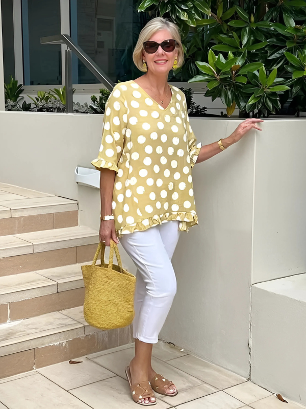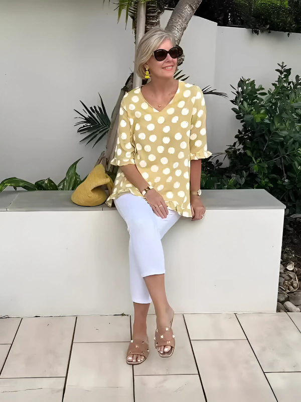 Le Haut Vintage Imprimé Dulce offre une coupe flatteuse qui complète toute occasion. Conçu avec une élégance inspirée du rétro, il allie sophistication et durabilité, en faisant un choix parfait pour la femme moderne qui valorise à la fois le style et l'objectif.