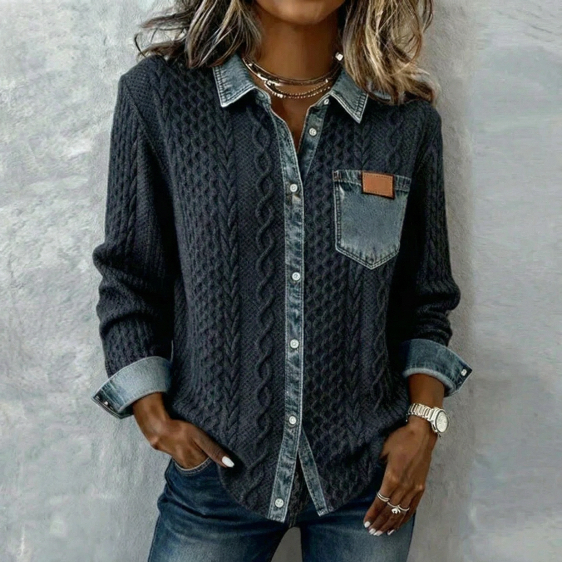 La chemise Élise est le choix idéal pour ceux qui recherchent chaleur et style pendant les hivers canadiens. Confectionnée en tricot doux, elle offre une sensation agréable au contact de la peau. Son col en denim et ses finitions raffinées apportent une touche d'élégance, la rendant parfaite pour un usage quotidien ou des occasions spéciales.