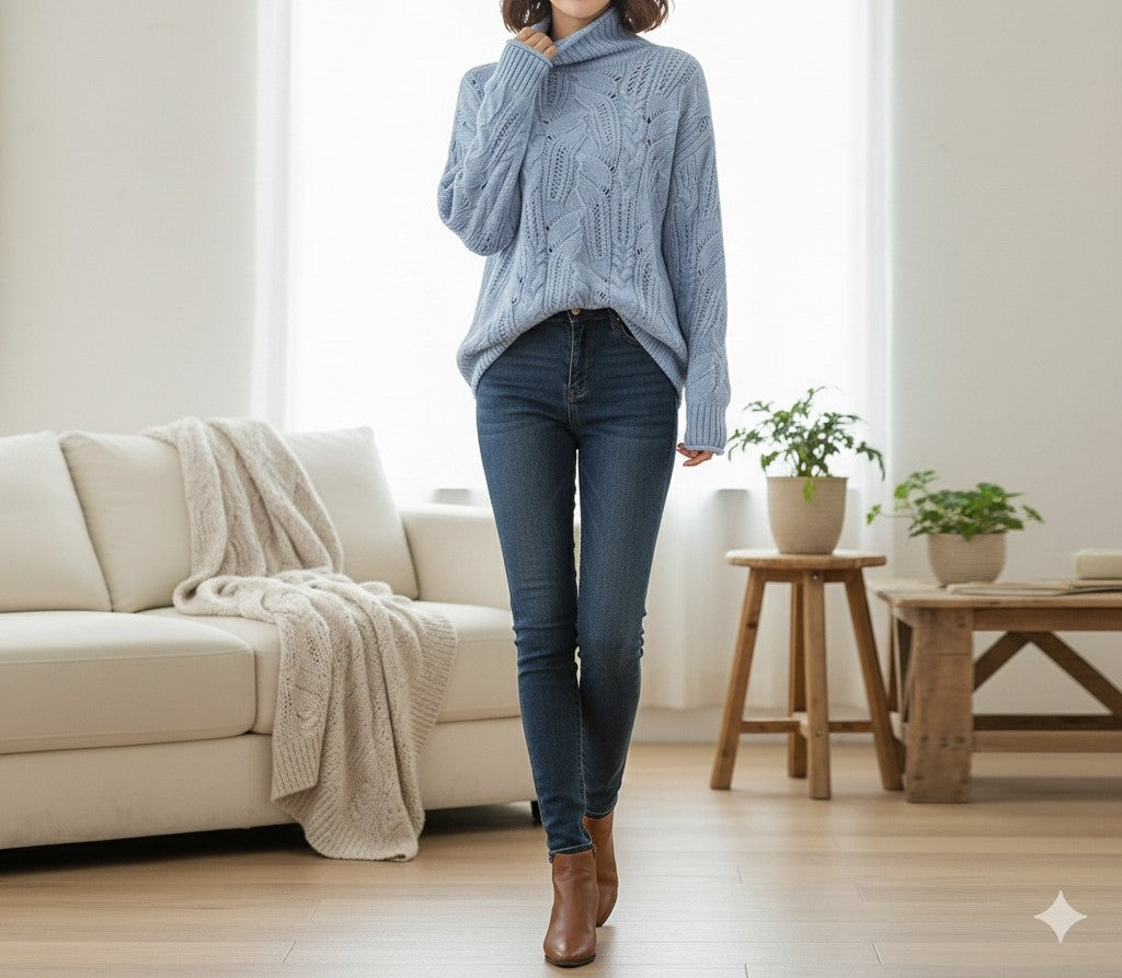 Ce pull col roulé incarne le mélange parfait de chaleur et de légèreté. Conçu avec un tissu doux et agréable au toucher, il vous garde à l'aise tout au long de la journée, que ce soit pour une sortie décontractée ou une journée au bureau.