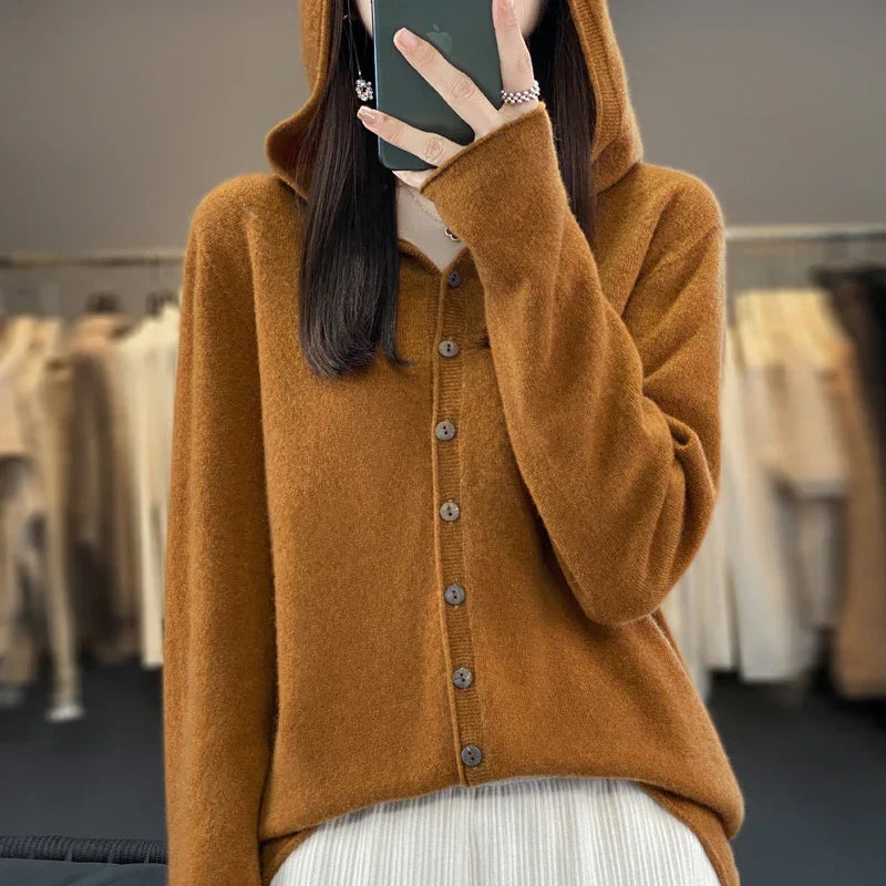 Le pull Sofia est l'allié parfait pour vos journées fraîches. Confectionné en 100% cachemire, il offre une sensation de douceur exceptionnelle et une chaleur enveloppante. Sa coupe légèrement oversize, agrémentée d'une capuche et de boutons, allie praticité et élégance — idéal pour un usage quotidien ou lors d'occasions décontractées.